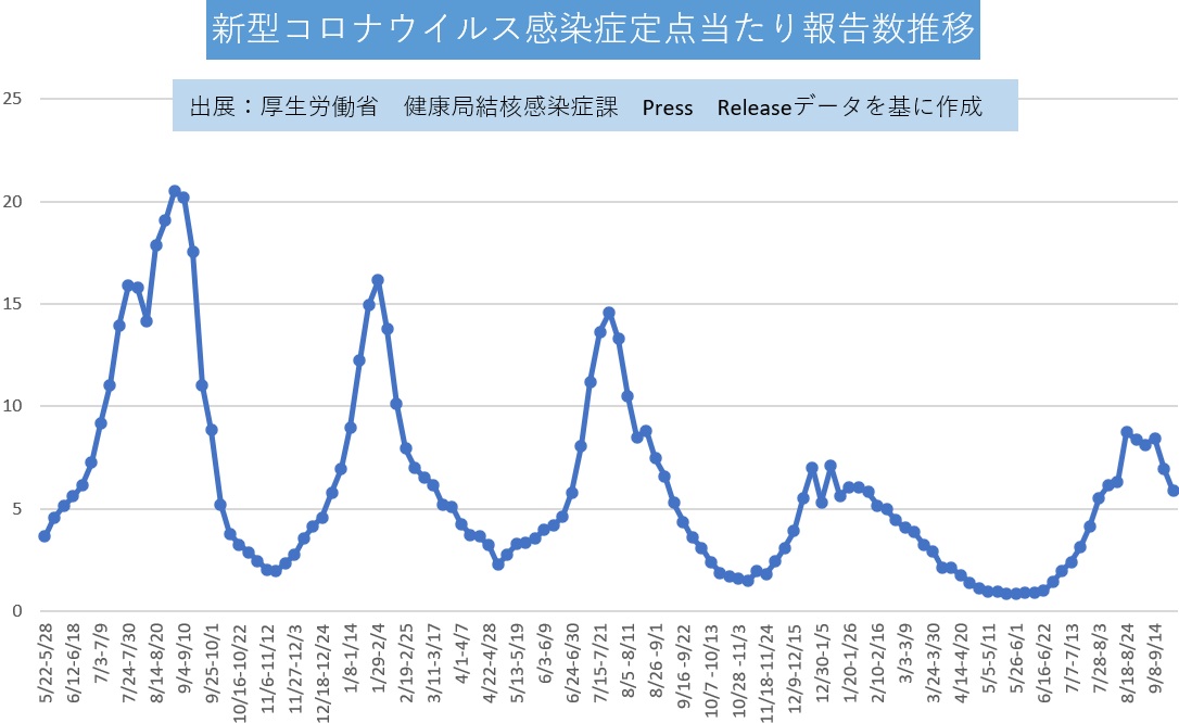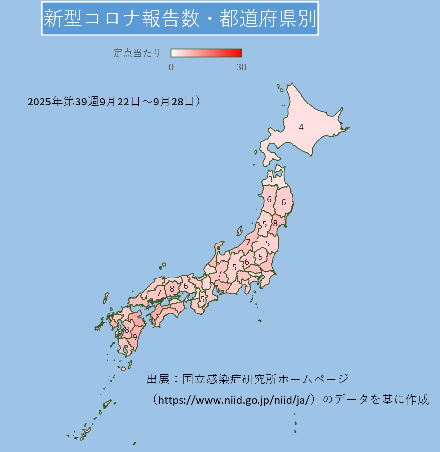 2025年9月22日~9月28日 2025.10.03 新型コロナウイルス感染症定点当たり報告数の第39週目(2025年9月22日~2025年9月28日)です。2023年5月からの報告数推移をグラフにしました。 < 2025年9月29日~10月5日2025年9月15日~9月21日 > NEW 2025.07.29 2025年夏季期間中もカレンダー通りにキエルキンを製造・出荷します! 2024.12.19 年末年始の出荷について 2024.11.16 【キエルキンをまだ使ったことがない方へ】お得なご新規セットを試しませんか?【2024年11月20日~2025年5月16日まで】 2024.07.30 2024年夏季もカレンダー通りにキエルキンを出荷します! 2024.04.26 除菌のしすぎは良くないのでは?