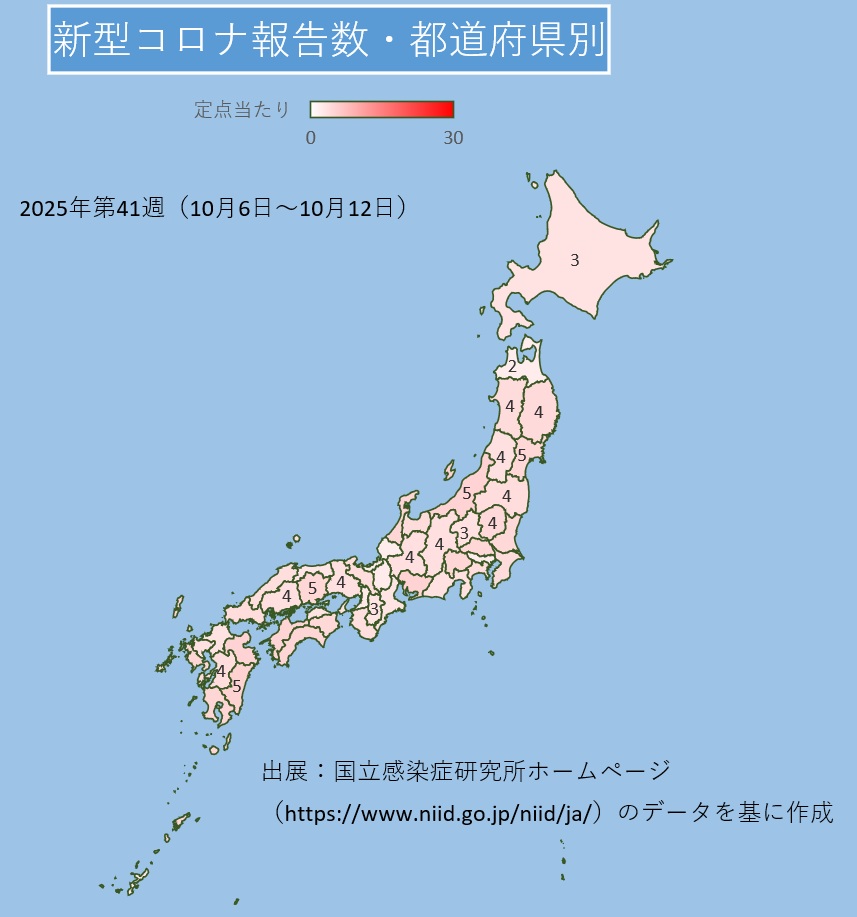 2025年10月6日~10月12日 2025.10.17 新型コロナウイルス感染症定点当たり報告数の第41週目(2025年10月6日~2025年10月12日)です。2023年5月からの報告数推移をグラフにしました。 < 2025年10月20日~10月26日2025年9月29日~10月5日 > NEW 2025.07.29 2025年夏季期間中もカレンダー通りにキエルキンを製造・出荷します! 2024.12.19 年末年始の出荷について 2024.11.16 【キエルキンをまだ使ったことがない方へ】お得なご新規セットを試しませんか?【2024年11月20日~2025年5月16日まで】 2024.07.30 2024年夏季もカレンダー通りにキエルキンを出荷します! 2024.04.26 除菌のしすぎは良くないのでは?