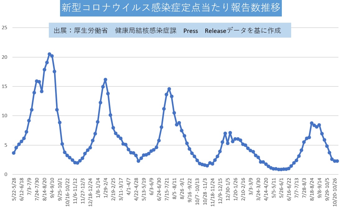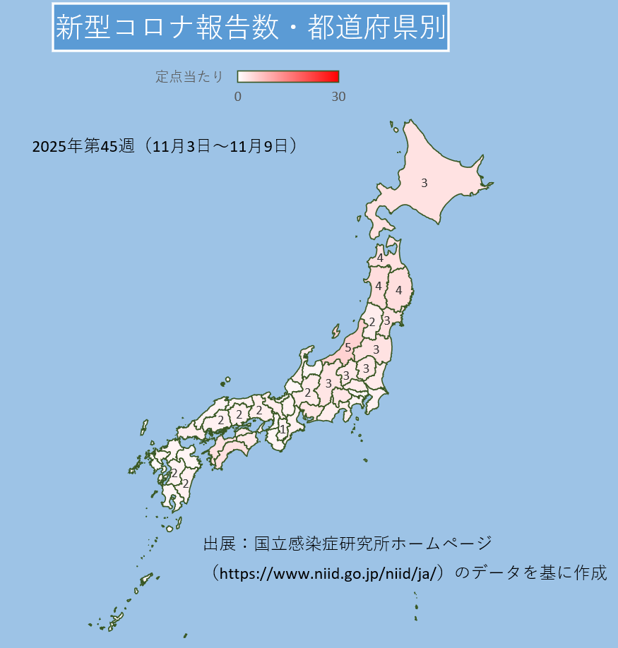 2025年11月3日~11月9日 2025.11.20 コロナウイルス感染症定点当たり報告数の第45週目(2025年11月3日~2025年11月9日)です。2023年5月からの報告数推移をグラフにしました。 2025年10月27日~11月2日 > NEW 2025.07.29 2025年夏季期間中もカレンダー通りにキエルキンを製造・出荷します! 2024.12.19 年末年始の出荷について 2024.11.16 【キエルキンをまだ使ったことがない方へ】お得なご新規セットを試しませんか?【2024年11月20日~2025年5月16日まで】 2024.07.30 2024年夏季もカレンダー通りにキエルキンを出荷します! 2024.04.26 除菌のしすぎは良くないのでは?