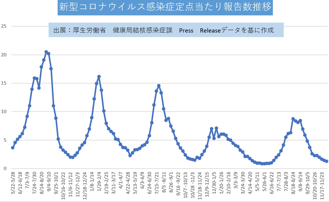 2025年12月1日~12月7日 2025.12.12 コロナウイルス感染症定点当たり報告数の第49週目(2025年12月1日~2025年12月7日)です。2023年5月からの報告数推移をグラフにしました。 < 2025年12月8日~12月14日2025年11月24日~11月30日 > NEW 2025.12.10 年末年始の出荷について 2025.07.29 2025年夏季期間中もカレンダー通りにキエルキンを製造・出荷します! 2024.12.19 年末年始の出荷について 2024.11.16 【キエルキンをまだ使ったことがない方へ】お得なご新規セットを試しませんか?【2024年11月20日~2025年5月16日まで】 2024.07.30 2024年夏季もカレンダー通りにキエルキンを出荷します!