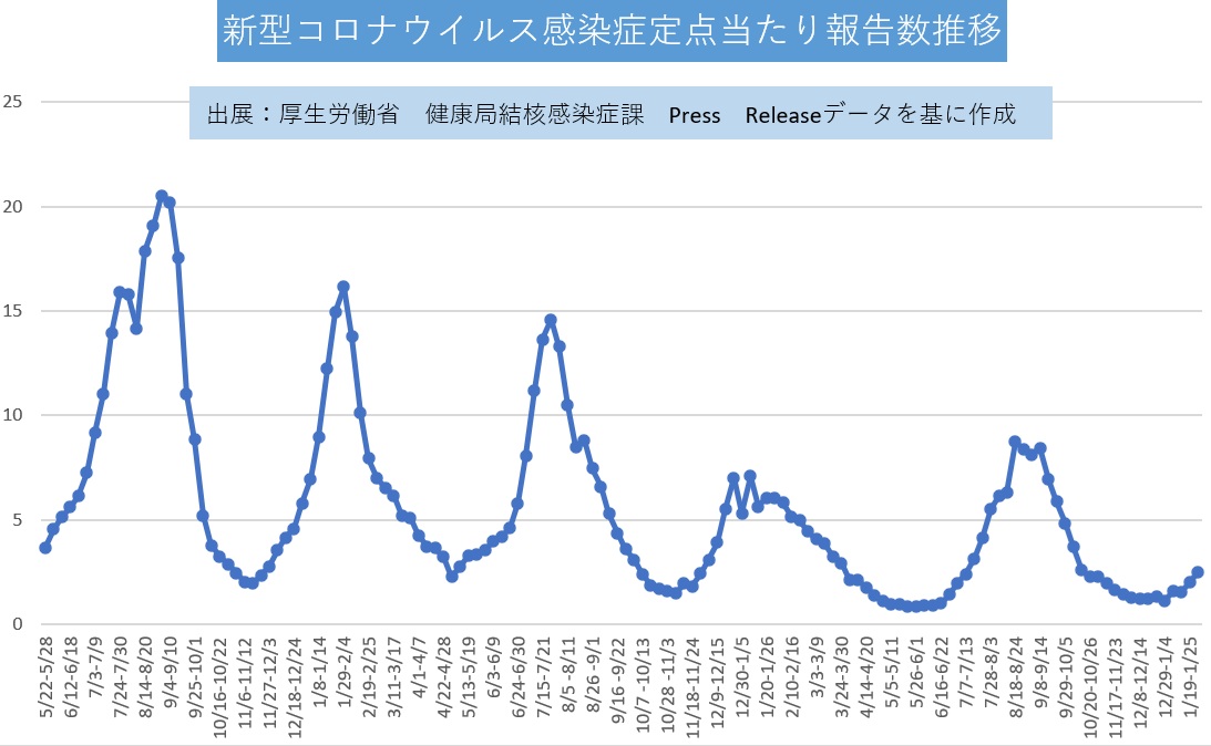 2026年1月26日~2月1日 2026.02.06 コロナウイルス感染症定点当たり報告数の第5週目(2026年1月26日~2026年2月1日)です。2023年5月からの報告数推移をグラフにしました。 < 2026年2月9日~2月15日2026年1月5日~1月11日 > NEW 2025.12.10 年末年始の出荷について 2025.07.29 2025年夏季期間中もカレンダー通りにキエルキンを製造・出荷します! 2024.12.19 年末年始の出荷について 2024.11.16 【キエルキンをまだ使ったことがない方へ】お得なご新規セットを試しませんか?【2024年11月20日~2025年5月16日まで】 2024.07.30 2024年夏季もカレンダー通りにキエルキンを出荷します!